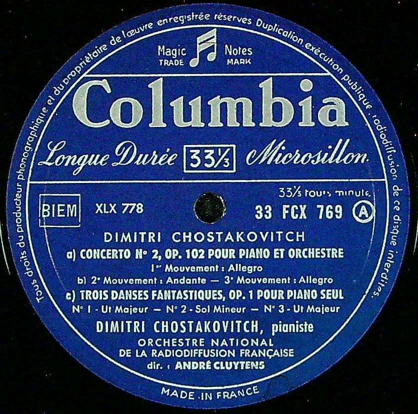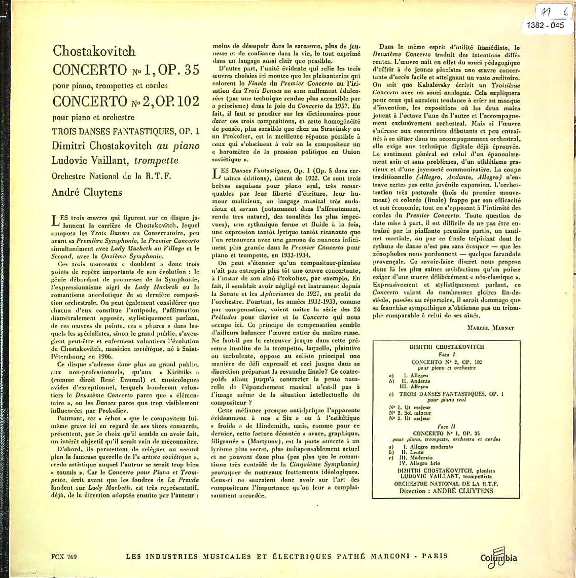 商品コード:1382-045[COLUMBIA] D.ショスタコーヴィチ(pf) 他 / ショスタコーヴィチ:Pf協奏曲1番Op.35, 2番Op.102, 3つの幻想的舞曲
