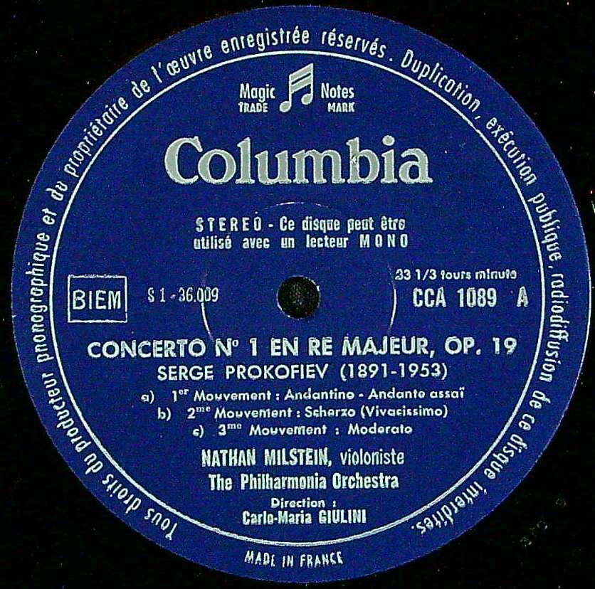 商品コード:1382-040[COLUMBIA] N.ミルシテイン(vn)/ プロコフィエフ:Vn協奏曲1番Op.19, Vn協奏曲2番Op.63