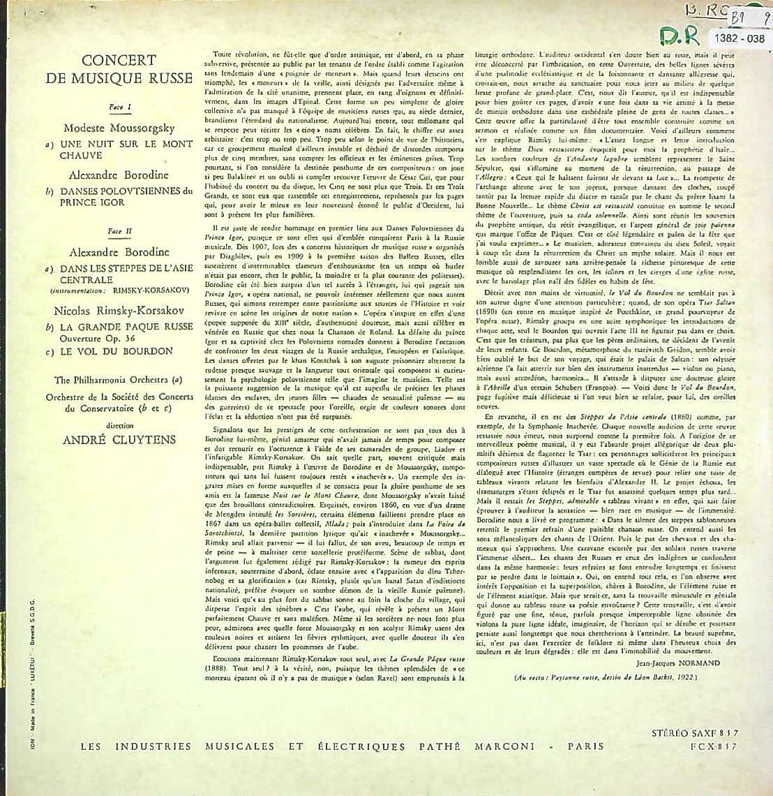 商品コード:1382-038[COLUMBIA] A.クリュイタンス/ ロシア音楽コンサート(管弦楽曲集)/ムソルグスキー, ボロディン, リムスキー・コルサコフ