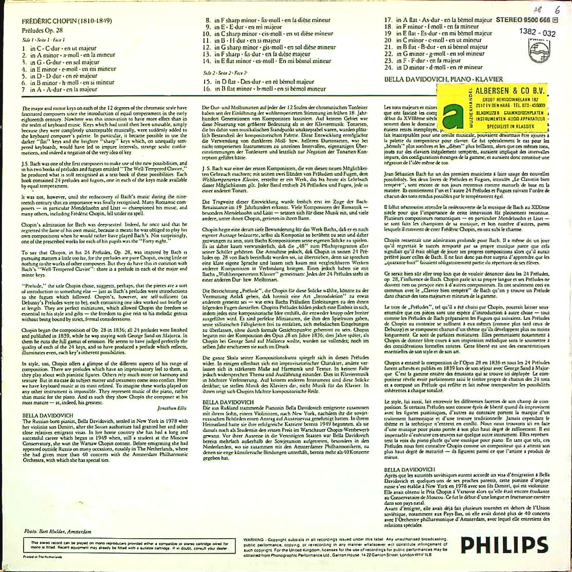 商品コード:1382-032[PHILIPS] B.ダヴィドヴィチ(pf) / ショパン:24の前奏曲Op.28(全曲)