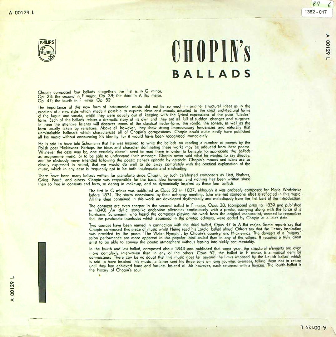 商品コード:1382-017p[PHILIPS] C.d.フロート(pf) / ショパン:バラード集(全4曲/完結)/1番Op.23, 2番Op.38, 3番Op.47, 4番Op.52