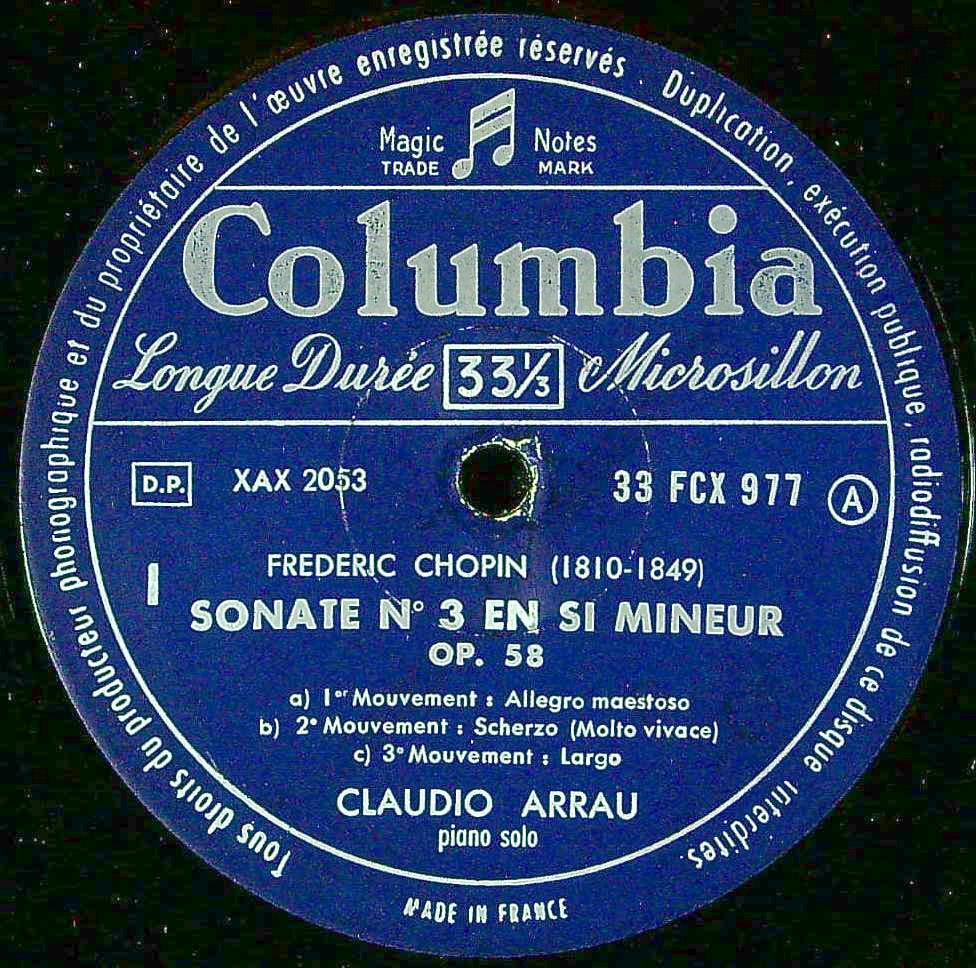 商品コード:1383-063[COLUMBIA] C.アラウ(pf) / ショパン:Pfソナタ3番Op.58, 幻想曲Op.49