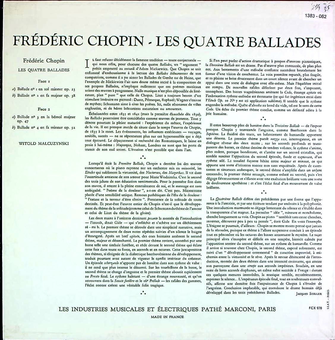 商品コード:1383-062[COLUMBIA] W.マウツジンスキ(pf) / ショパン:4つのバラード(全曲)