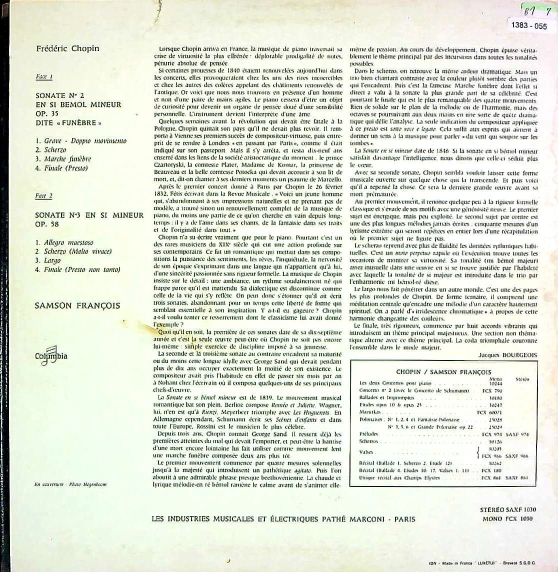 商品コード:1383-055p[COLUMBIA] S.フランソワ(pf) / ショパン:Pfソナタ2番Op.35「葬送行進曲」, Pfソナタ3番Op.58