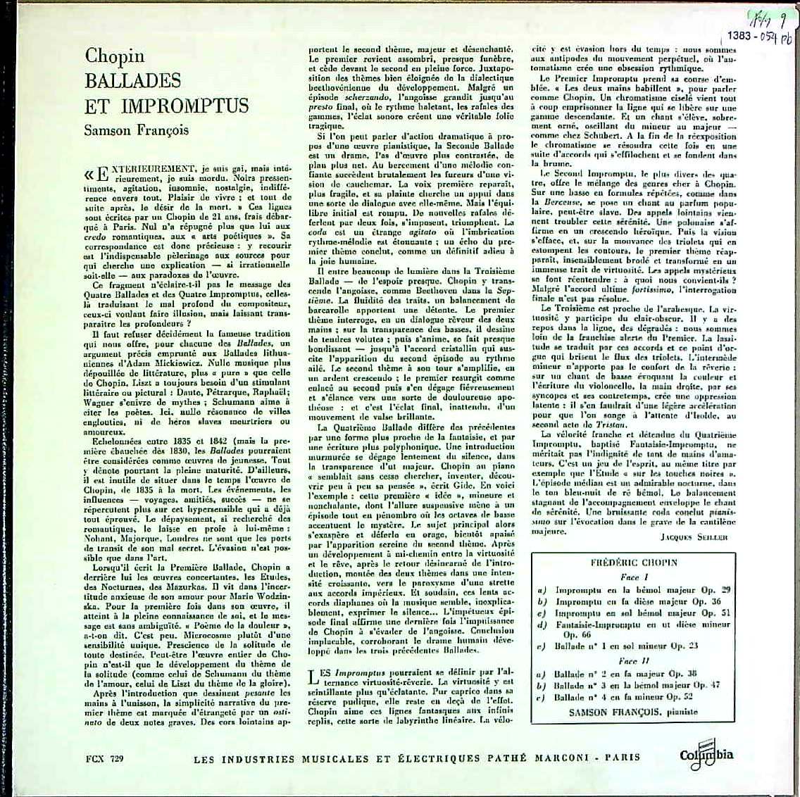 商品コード:1383-054pb[COLUMBIA] S.フランソワ(pf) / ショパン:即興曲1~3番, 幻想即興曲, バラード1~4番
