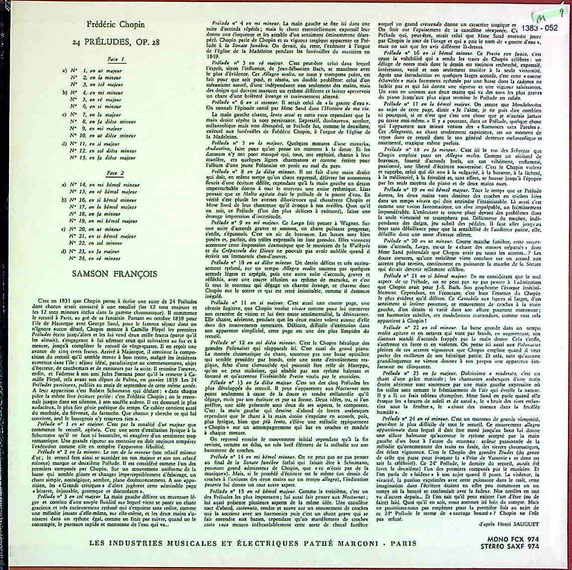 商品コード:1383-052p[COLUMBIA] S.フランソワ(pf) / ショパン:24の前奏曲Op.28(全曲)