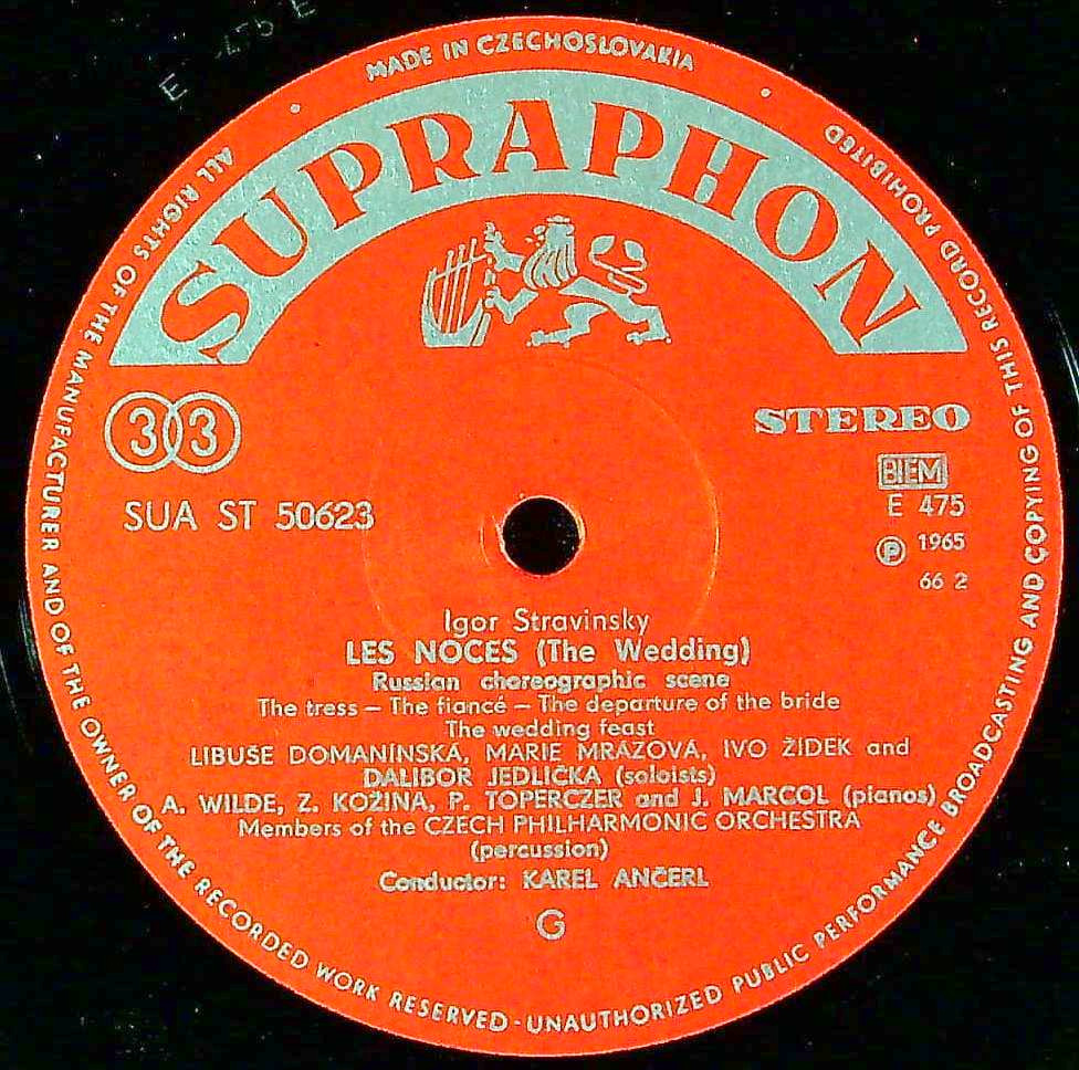 商品コード:1383-049t[SUPRAPHON] K.アンチェル / ストラヴィンスキー:バレエ・カンタータ「結婚」, 組曲「兵士の物語」
