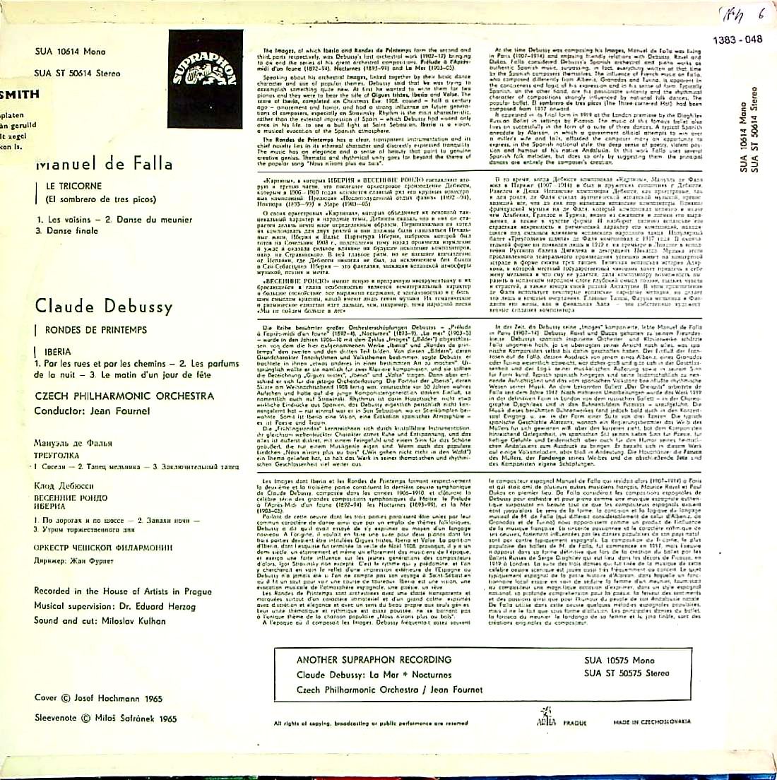 商品コード:1383-048[SUPRAPHON] J.フルネ/ ドビュッシー:管弦楽の為の「映像」~第2曲イベリア&第3曲 春のロンド, ファリャ:「三角帽子」第2組曲