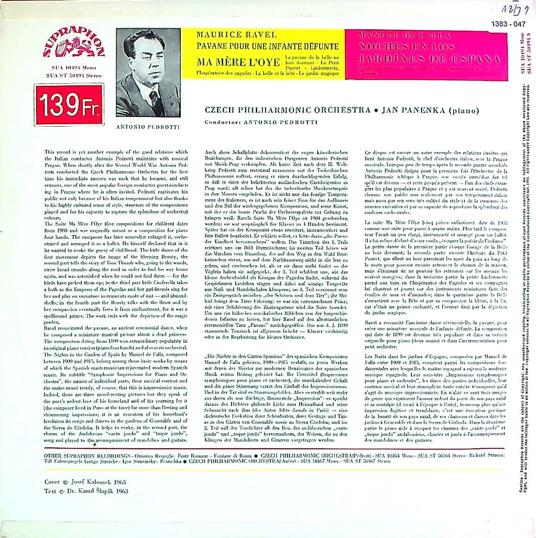 商品コード:1383-047[SUPRAPHON] A.ペドロッティ指揮 J.パネンカ(pf) / ラヴェル:亡き王女のためのパヴァーヌ, マ・メール・ロワ, ファリャ:スペインの庭の夜