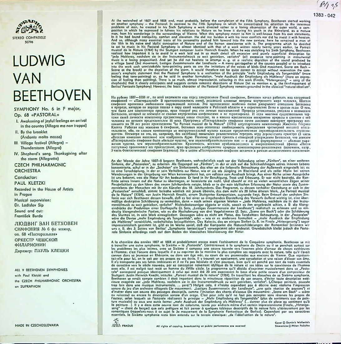 商品コード:1383-042[SUPRAPHON] P.クレツキ/ ベートーヴェン:交響曲6番Op.68「田園」