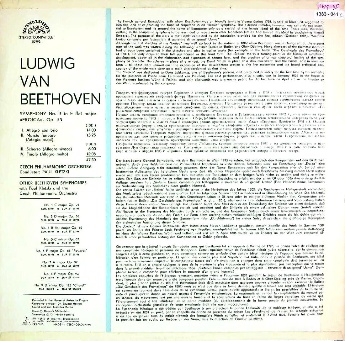 商品コード:1383-041t[SUPRAPHON] P.クレツキ / ベートーヴェン:交響曲3番Op.55「英雄」