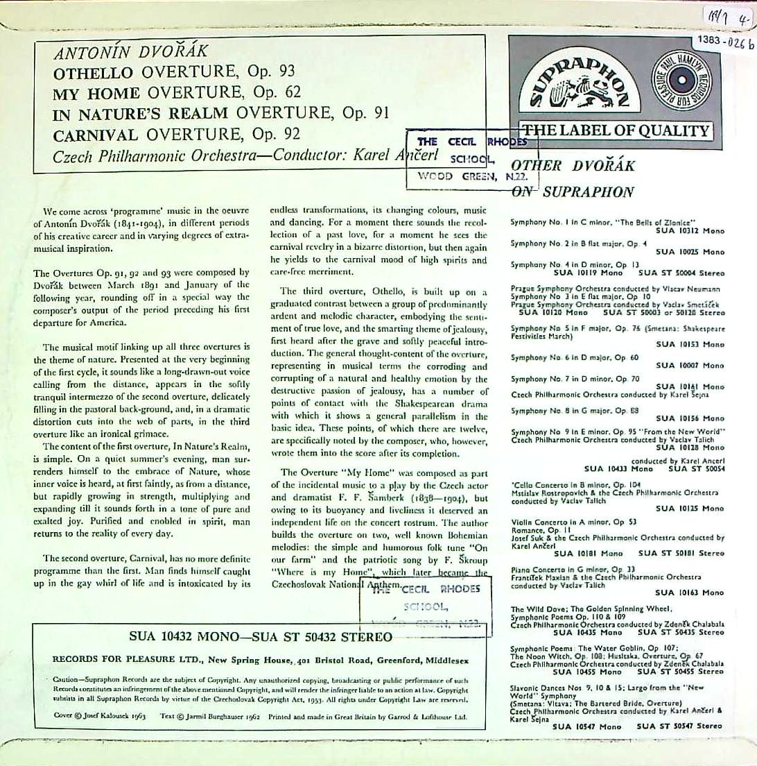 商品コード:1383-026b[SUPRAPHON] K.アンチェル/ ドヴォルザーク:序曲集/オセロOp.93, わが家Op.62, 自然の中でOp.91, 謝肉祭Op.92