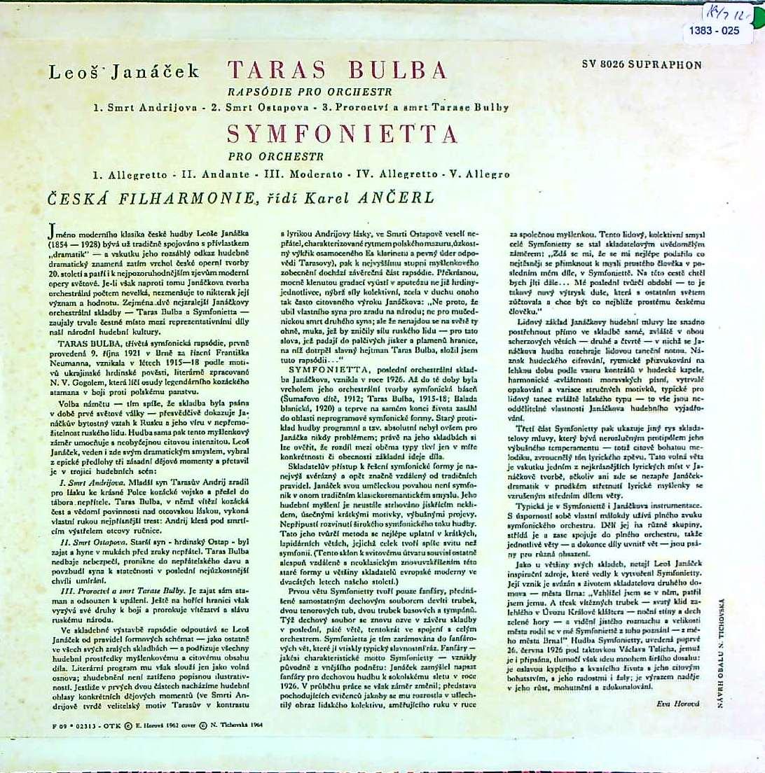 商品コード:1383-025[SUPRAPHON] K.アンチェル/ ヤナーチェク:シンフォニエッタ, 狂詩曲「タラス・ブーリバ」