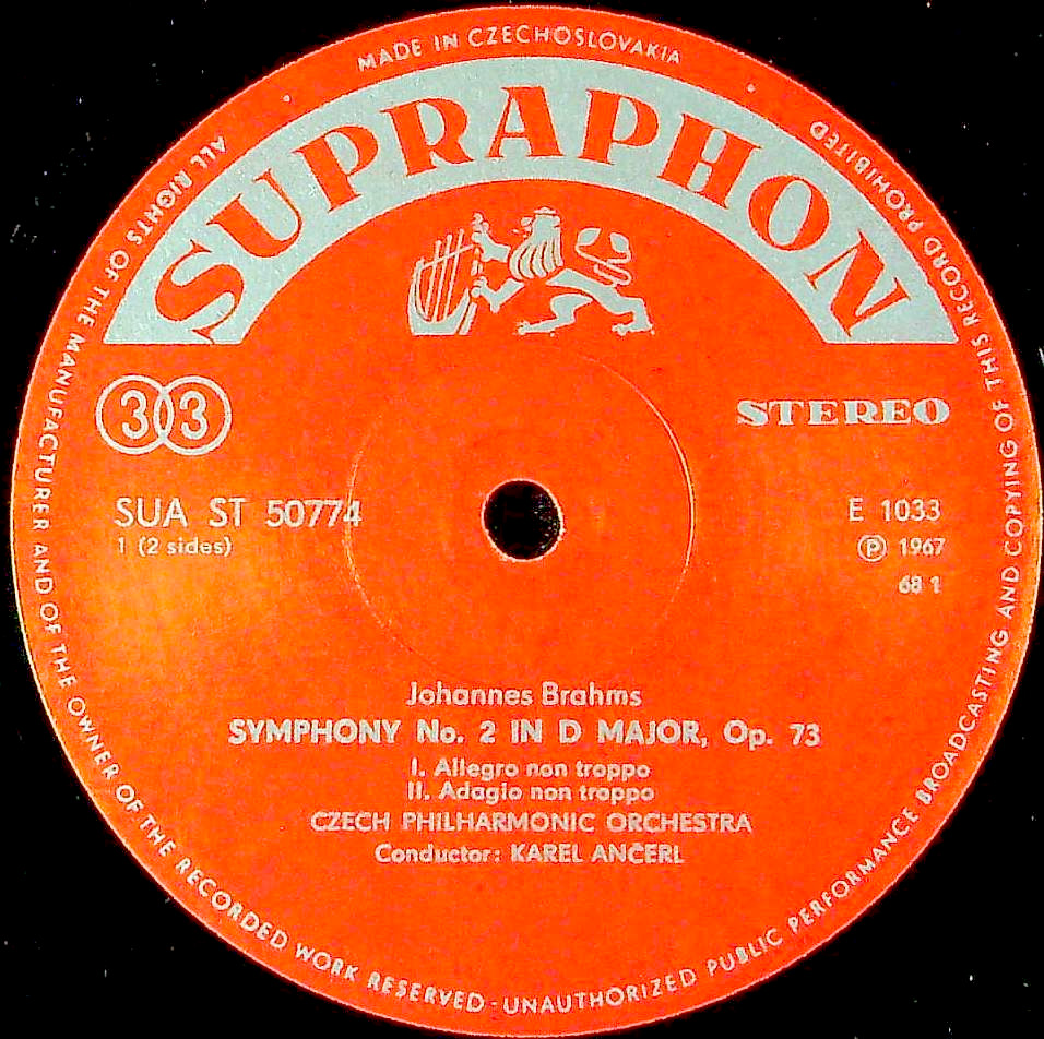 商品コード:1383-018[SUPRAPHON] K.アンチェル/ ブラームス:交響曲2番Op.73