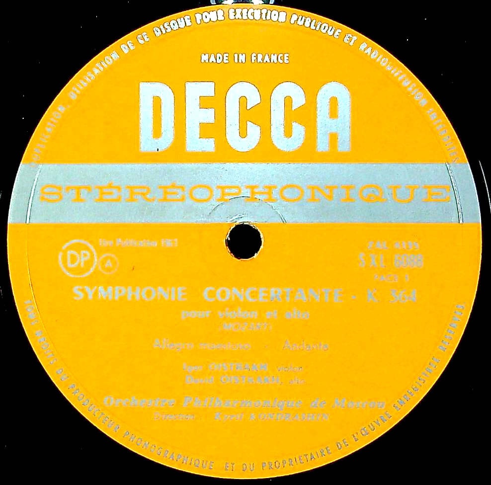 商品コード:1383-016[DECCA] I.オイストラフ(vn) D.オイストラフ(va)/ モーツァルト:協奏交響曲K.364, 二重奏曲1番K.423