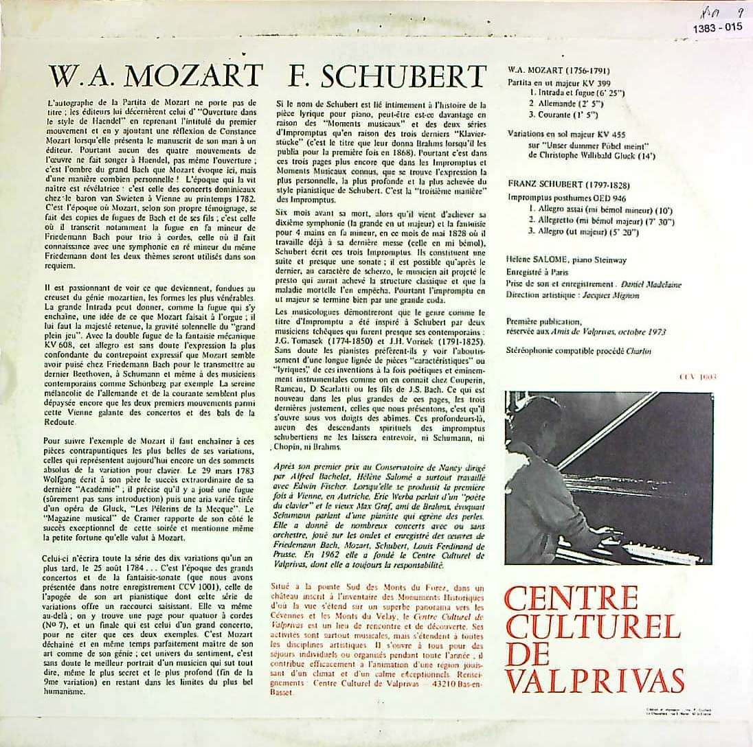 商品コード:1383-015[Valprivas] H.サロメ(pf) / モーツァルト:序奏とフーガK.399(K.385i), 10の変奏曲K.455, シューベルト:即興曲.D..946