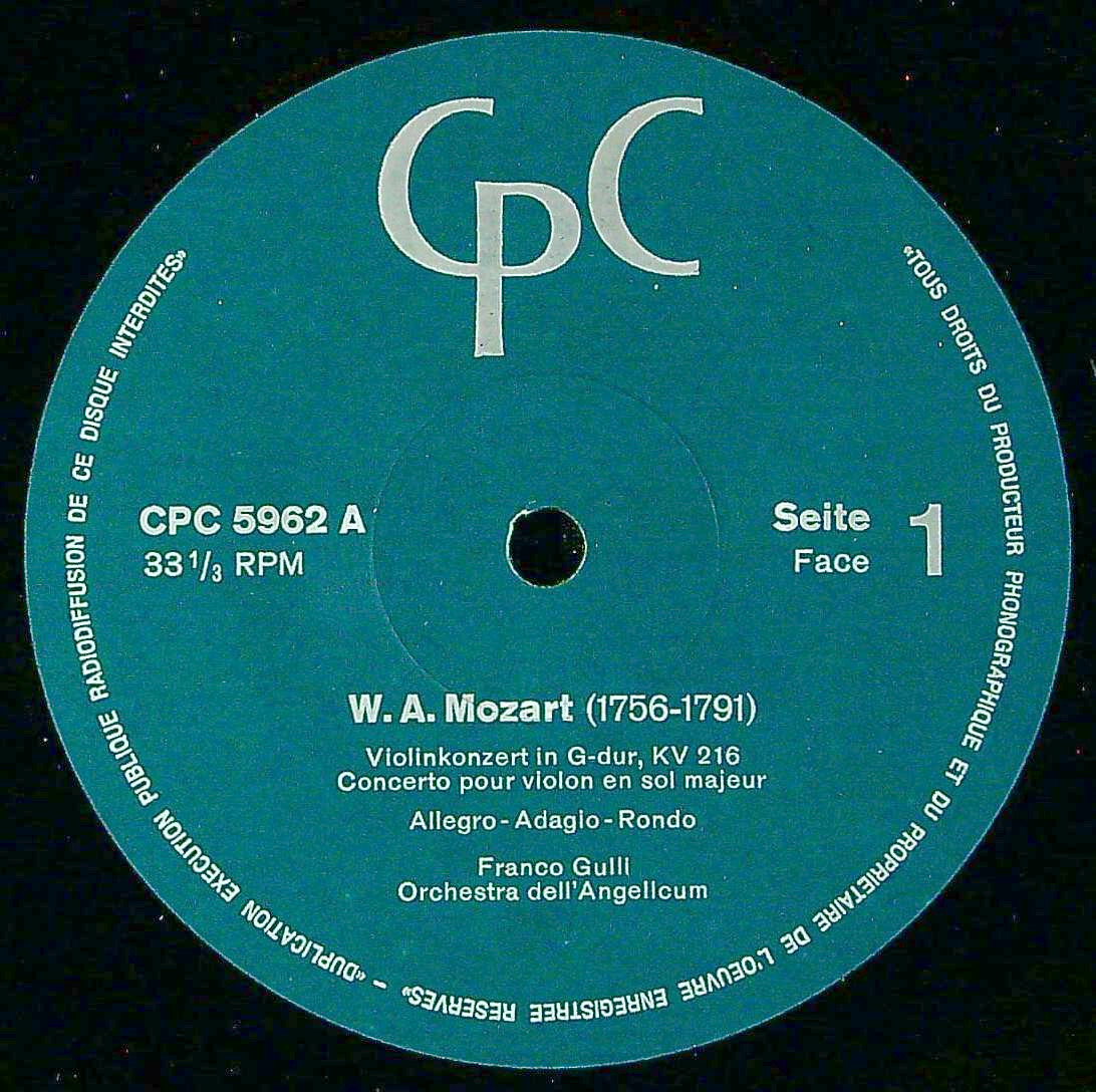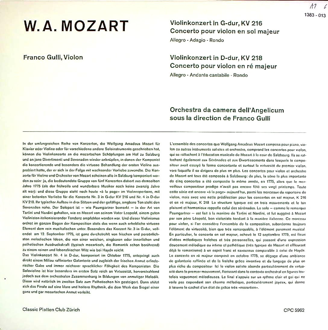 商品コード:1383-013[CPC] F.グッリ(vn)指揮/ モーツァルト:Vn協奏曲3番K.216, 4番K.218