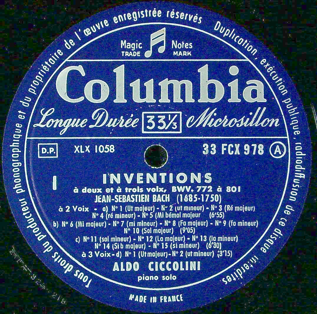 商品コード:1383-004[COLUMBIA] A.チッコリーニ(pf) / バッハ:インヴェンションとシンフォニアBWV.772~801(全曲)