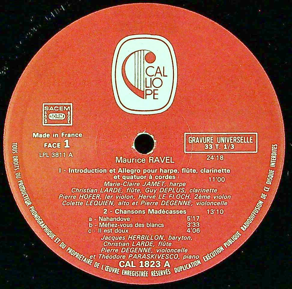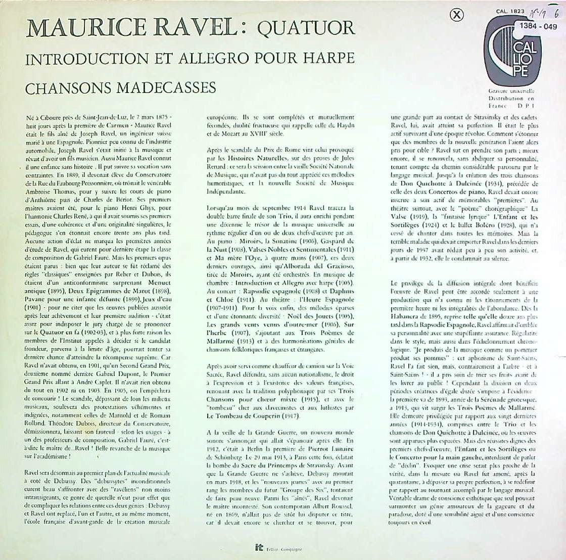商品コード:1384-049[CALLIOPE] ドビュッシーQt./J.エルビヨン(br) 他/ ラヴェル生誕100周年Vol.3/序奏とアレグロ, マダカスカル島民の歌, 弦楽四重奏曲