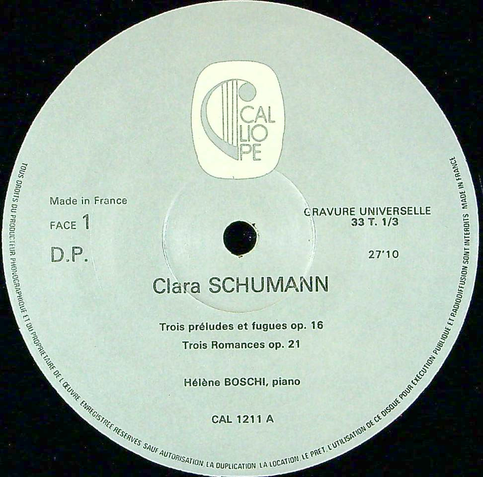 商品コード:1384-046b[CALLIOPE] H.ボッシ(pf) 他/ クララ・シューマン:Pf三重奏曲Op.17, ロマンスOp.22 他