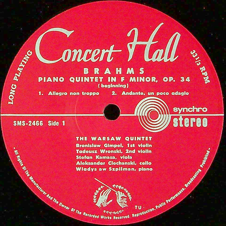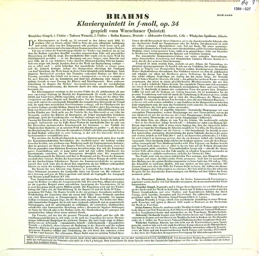 商品コード:1384-027[Concert Hall] ワルシャワPf五重奏団/ ブラームス:Pf五重奏曲Op.34