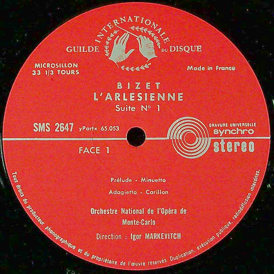 商品コード:1384-025[GUILDE du DISQUE] I.マルケヴィチ/ ビゼー:「アルルの女」第1組曲(全4曲)