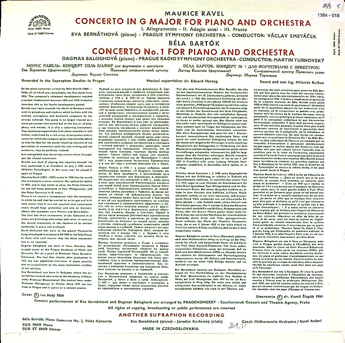 商品コード:1384-018[SUPRAPHON] E.ベルナトヴァ(pf)/D.バログホヴァー(pf)/ ラヴェル:Pf協奏曲, バルトーク:Pf協奏曲1番