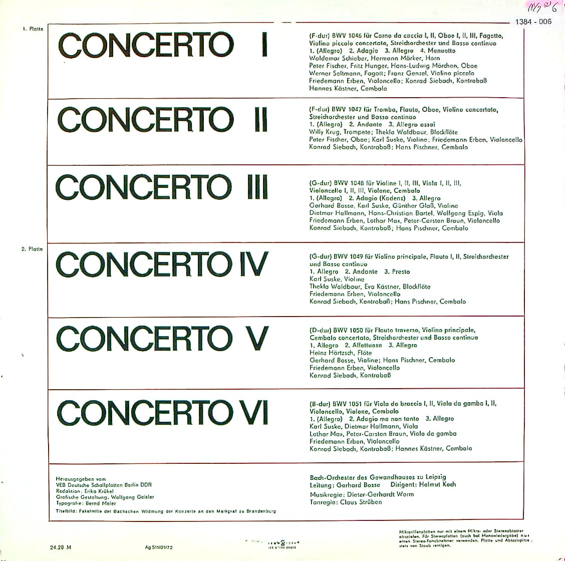 商品コード:1384-006t[ETERNA] H.コッホ指揮 G.ボッセ, K.ズスケ(vn) 他 / バッハ:ブランデンブルク協奏曲BWV.1046~1051