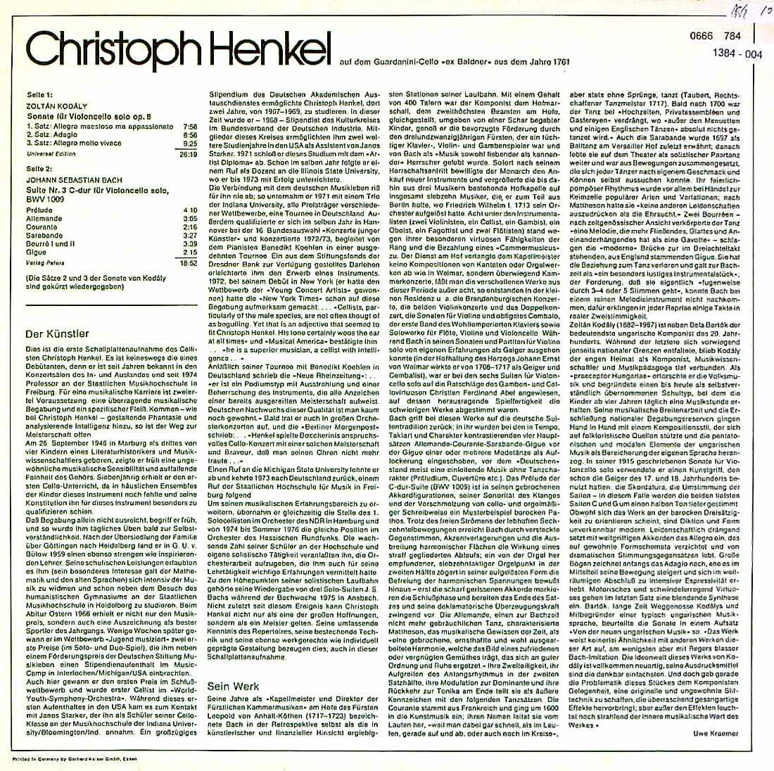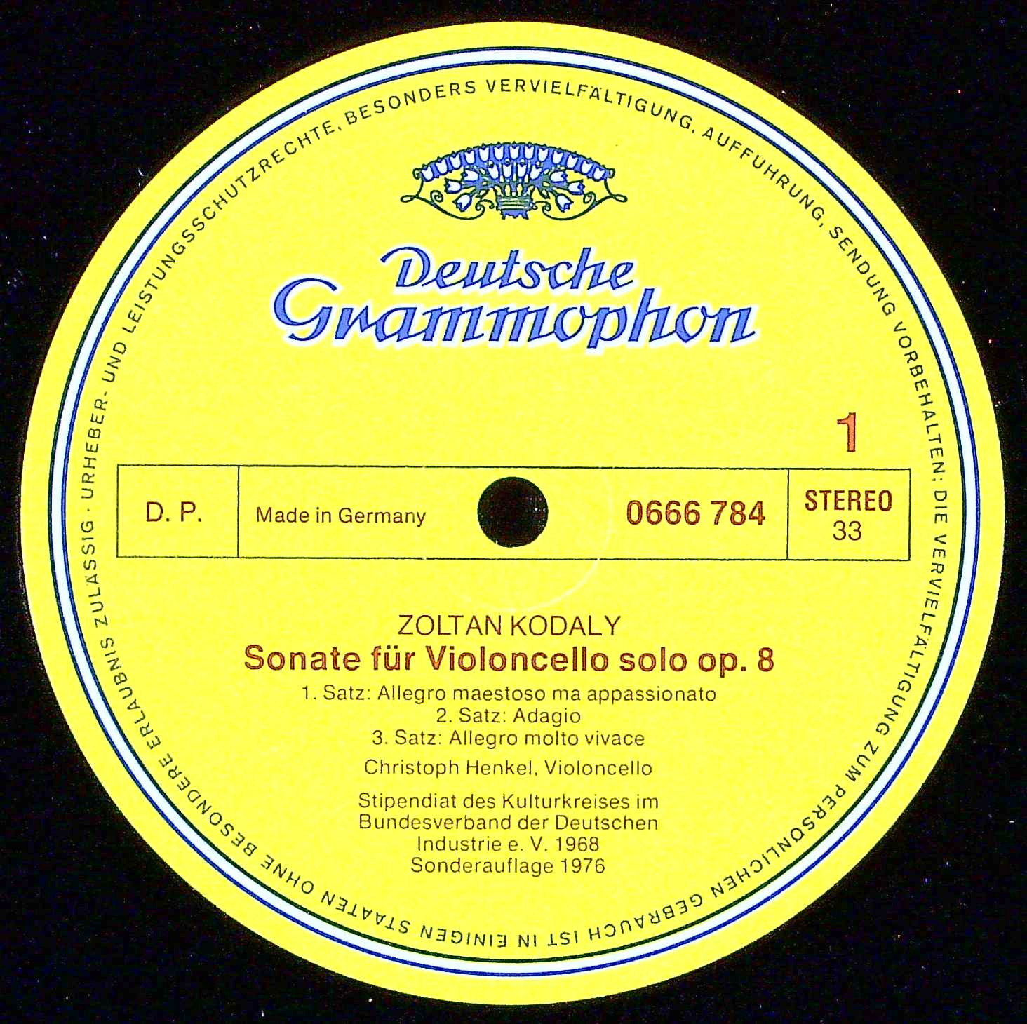 商品コード:1384-004[DGG] C.ヘンケル(vc) / コダーイ:無伴奏VcソナタOp.8, バッハ:無伴奏Vc組曲3番BWV.1009