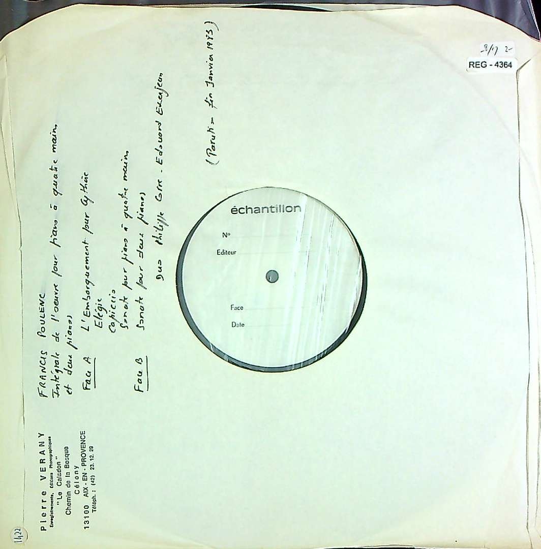 商品コード:REG-4364[仏Pierre Verany] P.コレ, E.エクスルジャン(pf) / 「プーランク:2台Pf/4手連弾のための作品全集」(全曲)