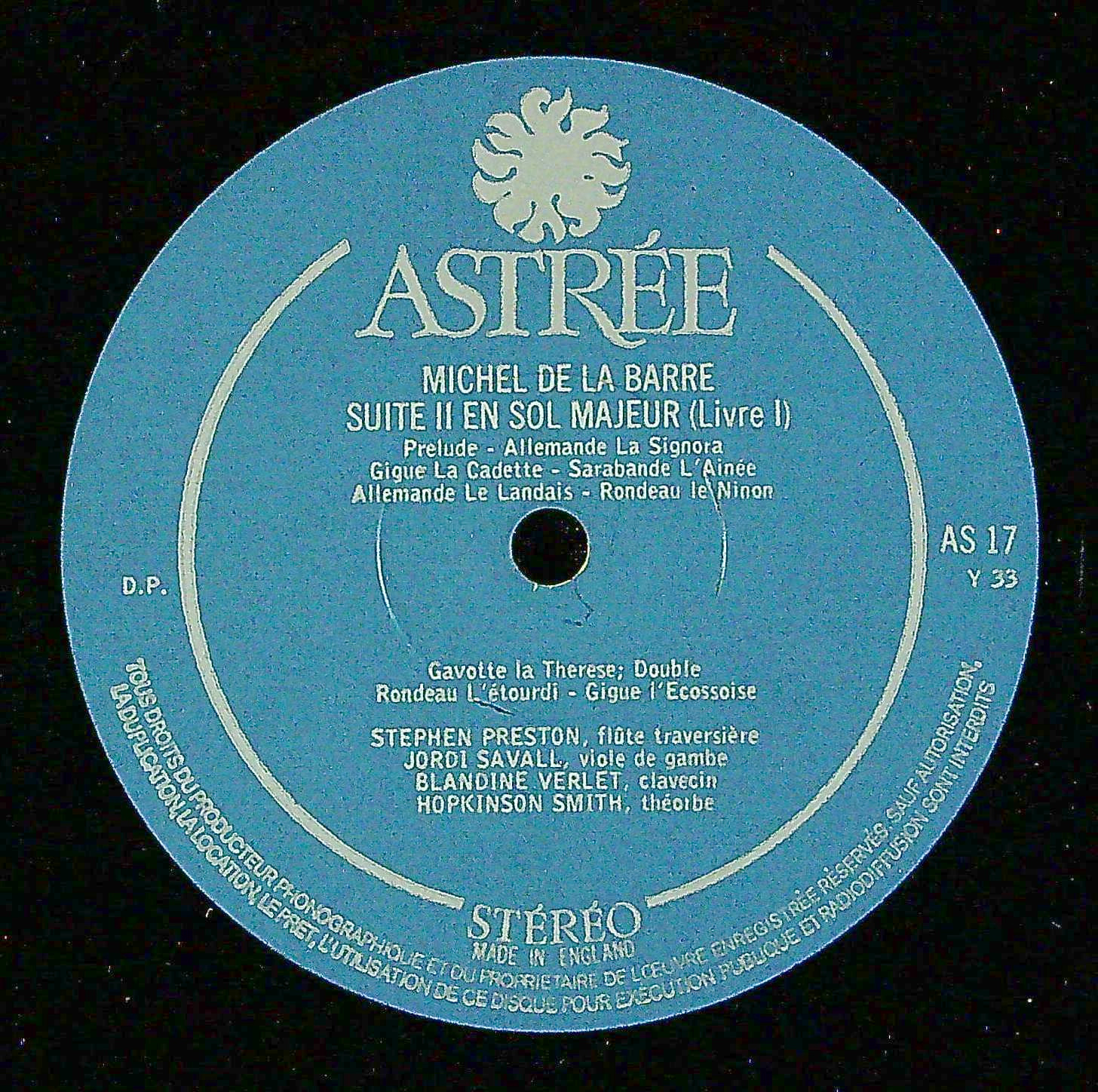 商品コード:1385-052[ASTRÉE] S.プレストン(fl) 他 / ミシェル・ドゥ・ラ・バール:組曲2番ト長調・第1巻 他