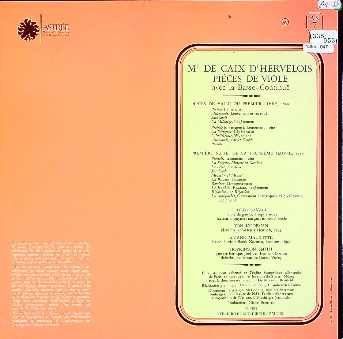 商品コード:1385-047[ASTRÉE] J.サヴァール(gamb) 他 / デルブロワ:ヴィオール曲集/第1巻(1708), 第3巻(1731)