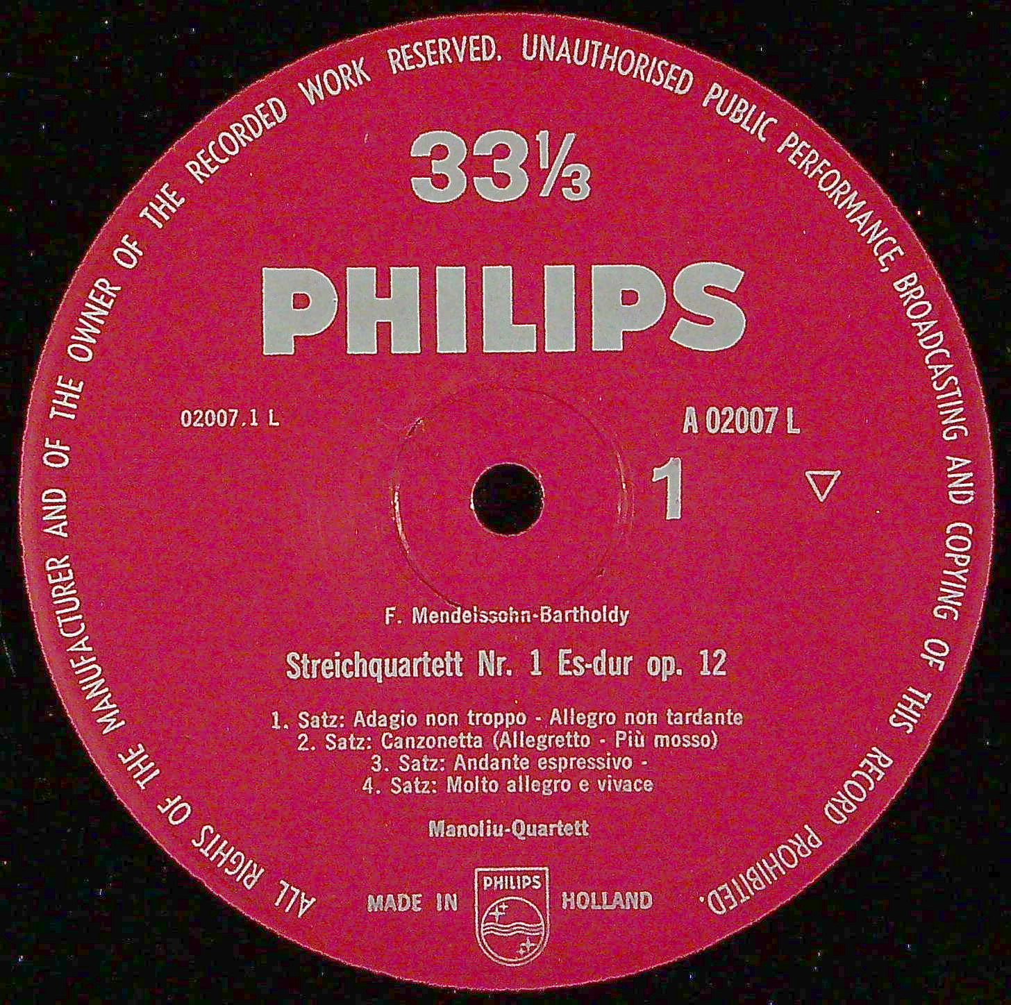 商品コード:1385-038p[PHILIPS] マノリウQt. / メンデルスゾーン:弦楽四重奏曲全集vol.1/1番Op.12, 2番Op.13