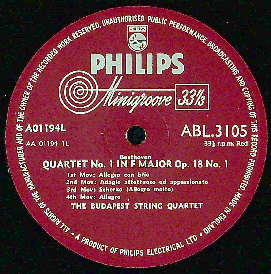 商品コード:1385-018[PHILIPS] ブダペストQt. / ベートーヴェン:弦楽四重奏曲全集(16曲)(モノラル初回)