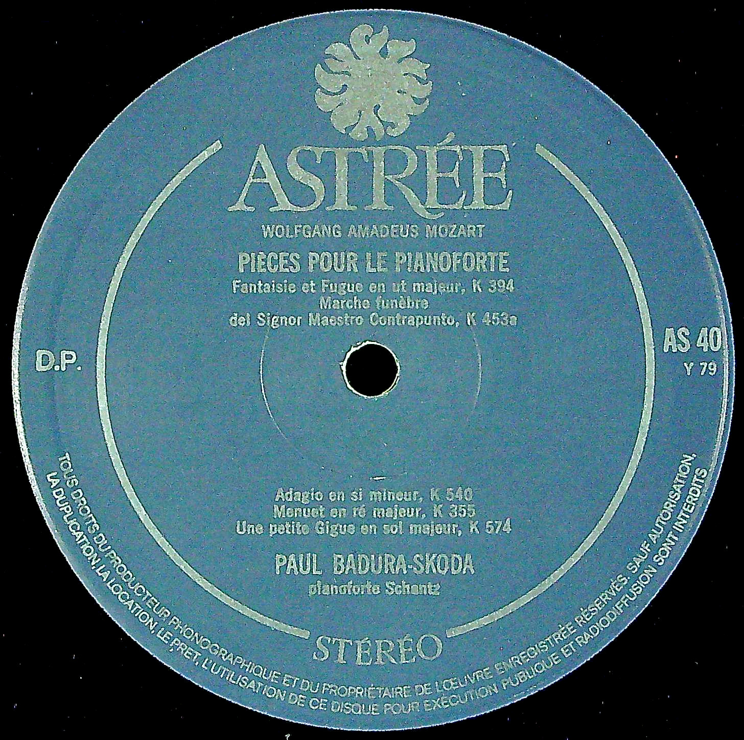 商品コード:1385-014[ASTRÉE] P.バドゥラ・スコダ(hf) / モーツァルト:幻想曲とフーガK.394, 葬送行進曲K.453a, アダージョK.540 他