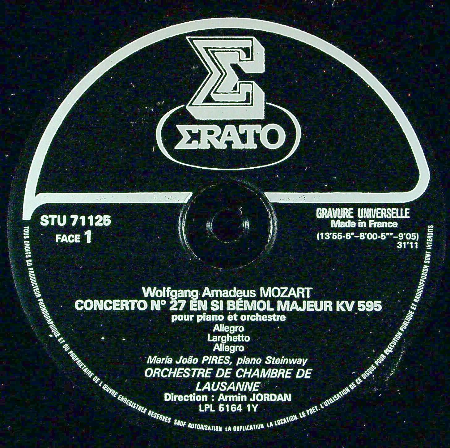 商品コード:1385-013[ERATO] M.J.ピレシュ(pf)/ モーツァルト:Pf協奏曲集Vol.7/27番K.595, 20番K.466