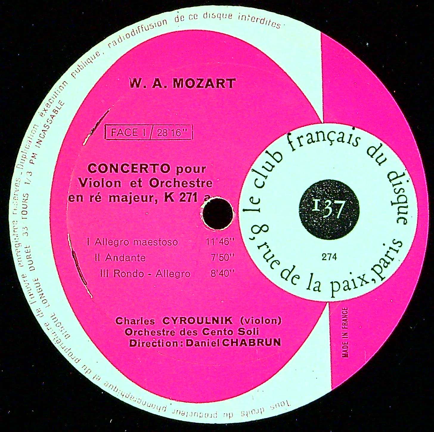 商品コード:1385-010b[Club Français] C.シルルニク(vn) / モーツァルト:Vn協奏曲7番K.271a, 5番K.219「トルコ風」