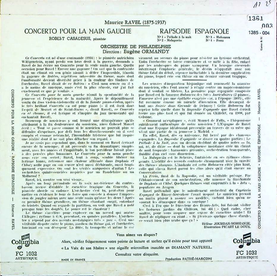 商品コード:1385-004[COLUMBIA] R.カサドシュ(pf) / ラヴェル:左手のための協奏曲, スペイン狂詩曲