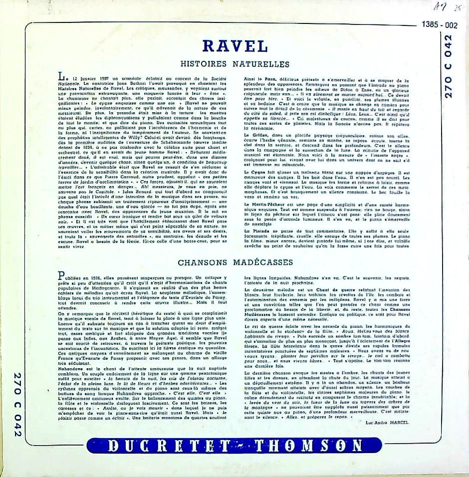 商品コード:1385-002[Ducretet Thomson] J.C.ブノワ(br) / ラヴェル:歌曲集/博物誌, マダガスカル先住民の歌