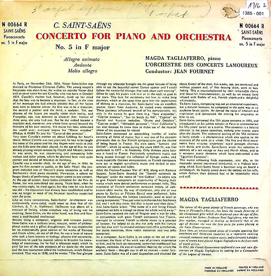 商品コード:1385-001[PHILIPS] M.タリアフェロ(pf)/ サン・サーンス:Pf協奏曲5番Op.103「エジプト風」