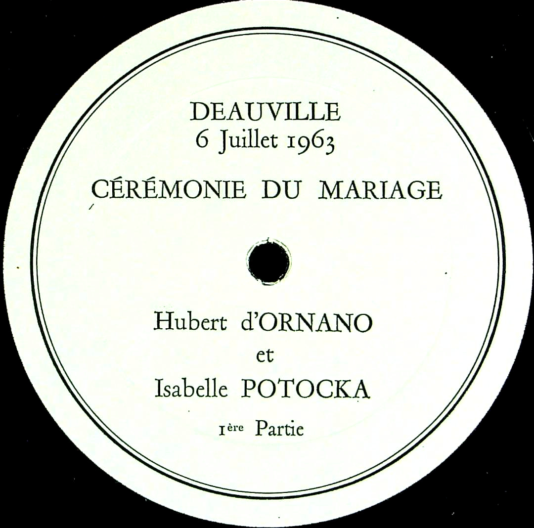 トピックス:白/黒テスト?, 内袋(ジャケ元々存在せず), 結婚式で使う曲が入るLP, '63年7月6日ドーヴィルにて録音, 仏実業家ユベール・ドルナーノ伯爵とイザベル・ポトツキ伯爵夫人の挙式の記念録音, 両面盤, テスト・プレス?, 初入荷