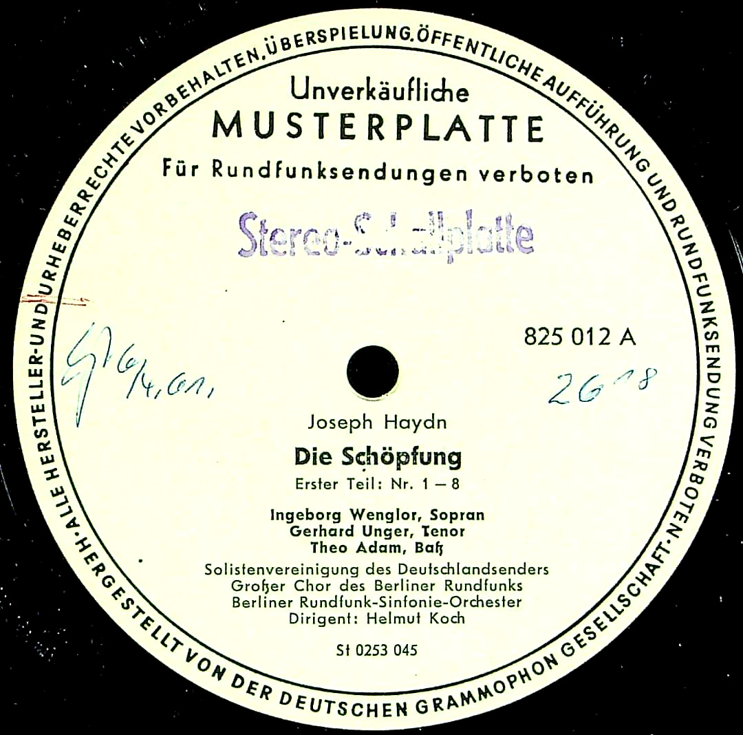 演奏者:H.コッホ指揮ベルリン放送so.cho. I.ヴェングロル(s)G.ウンガー(t)T.アダム(bs) 他