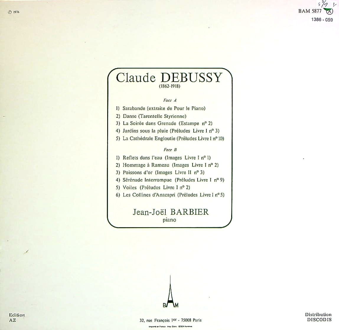 商品コード:1386-059[BAM] J.J.バルビエ(pf) / ドビュッシー:Pf曲集/サラバンド, 舞曲, グラナダの夕べ 他