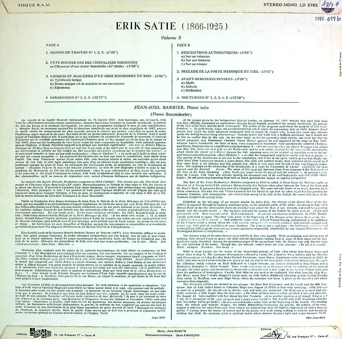 商品コード:1386-057b[BAM] J.J.バルビエ(pf) / サティ:Pf作品集vol.3/冷たい小品, スケッチとからかい, 3つのサラバンド, 最後から2番目の思想 他