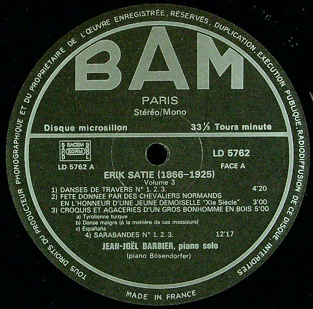 商品コード:1386-057[BAM] J.J.バルビエ(pf) / サティ:Pf作品集vol.3/冷たい小品, スケッチとからかい, 3つのサラバンド, 最後から2番目の思想 他