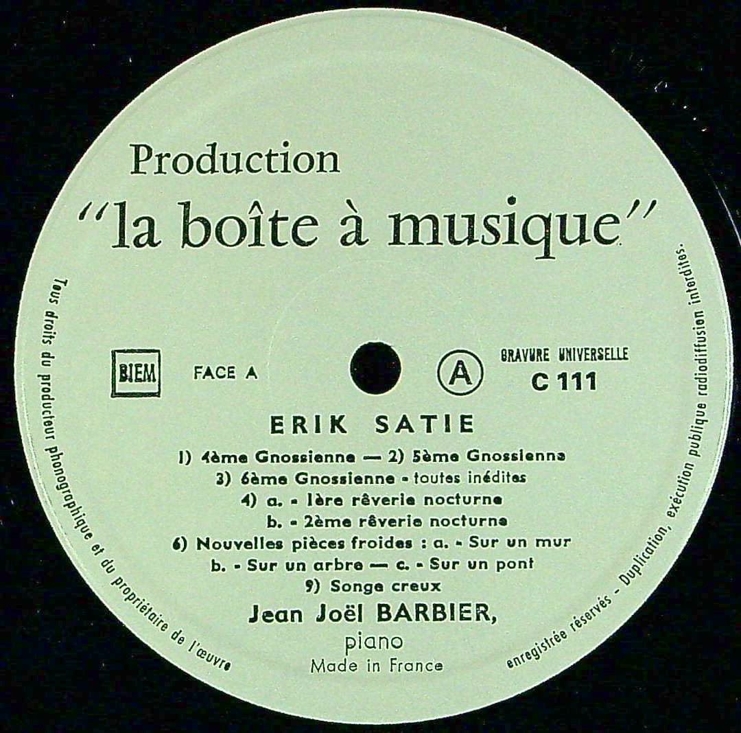 商品詳細:バルビエは'60年代BAMにサティを1枚分LD 093/5093で録音。その後'70年代に入って追加LP4枚分を録音し、全5枚で完結。これは全5枚からの抜粋盤ベスト・アルバムのような1枚。ソロ録音A面と、J.Wienerとの4手の作品のB面。ジャケはBAMのものが使われ(当初シールでBAMのロゴを隠している)、後の薄いプレスに比べ非常に鮮烈な音。一枚でサティを知るにはこれがお薦め。良い雰囲気と音の良さを兼ねる!尚レーベルにBAMのロゴはなく、親会社であるBoite a musique, La boite a musiqueが表記されている。通常のBAMとは異なる点をアピールしたかったのかもしれない。ジャン=ジョエル・バルビエ(1920 - 1994)はフランス・ベルフォールの生まれ。文学を学ぶかたわらラザール・レヴィに師事してピアノを学んだ。しかし、第二次世界大戦の勃発によって学業は中断した。バルビエは多作な著述家であり、1961年にはフランス音楽家辞典を出版した。ピアニストとしては、クロード・ドビュッシー、エマニュエル・シャブリエ、デオダ・ド・セヴラックなどのフランスの作曲家の作品を主に演奏した。後にサティが遺した全ピアノ曲の録音に取り組み、それがバルビエの業績の中で一番名高いものとなった。エリック・サティの演奏と研究の第一人者と言われ、サティの作品を純粋に音楽として扱おうと、確固たる姿勢を貫いている。1993年「サティとピアノで」という本を上梓している。録音は最初の1枚が1969年で残り4枚が1970-1971年である。サティの他にはセヴラック:ピアノ作品集とドビュッシー:ピアノ作品集が名高い。