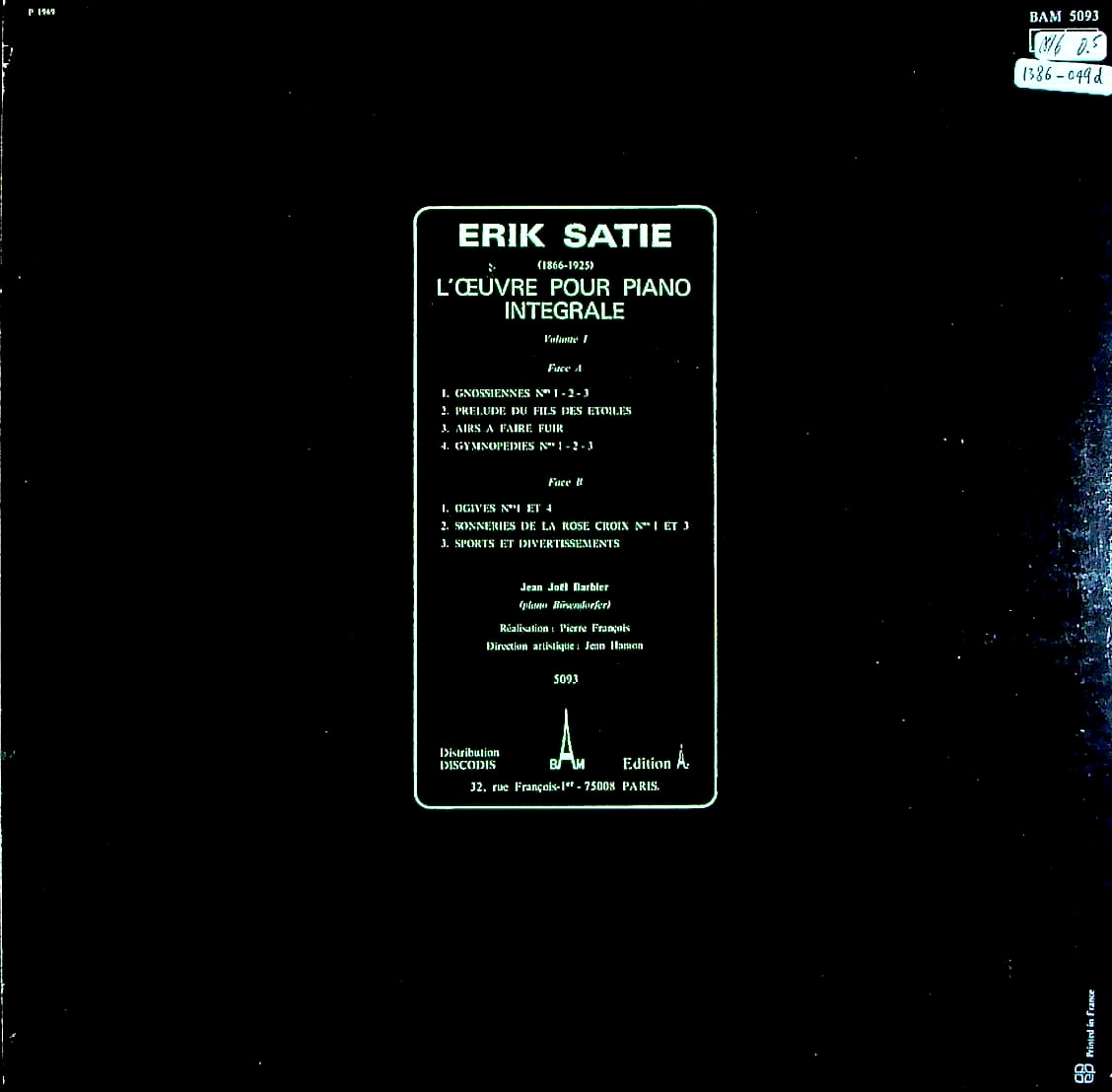 商品コード:1386-049d[BAM] J.J.バルビエ(pf) / サティ:Pf作品集vol.1/3つのグノシエンヌ, 冷たい小品, , 3つのジムノペディ), スポーツと気晴らし 他