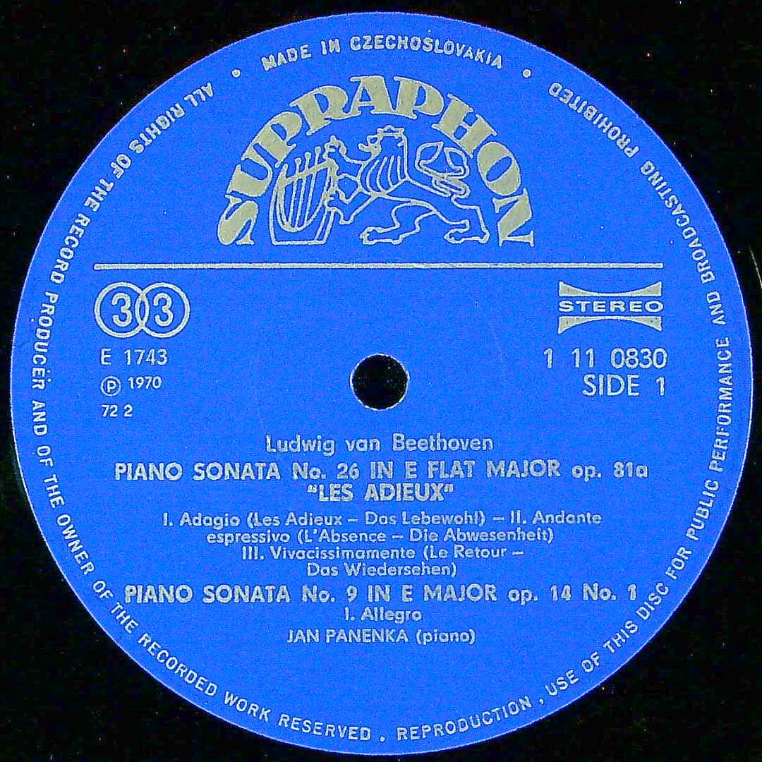 商品コード:1386-046p[SUPRAPHON] J.パネンカ(pf) / ベートーヴェン:Pfソナタ26番Op.81a「告別」, 9番Op.14-1, 10番Op.14-2