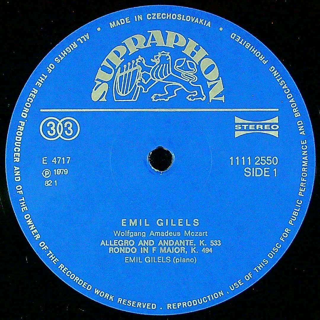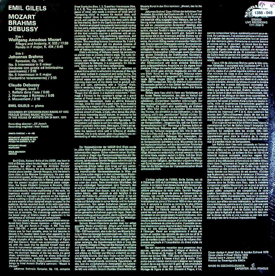 商品コード:1386-045t[SUPRAPHON] E.ギレリス(pf) / モーツァルト:アレグロとアンダンテK.533, ロンドK.494, ブラームス, ドビュッシー
