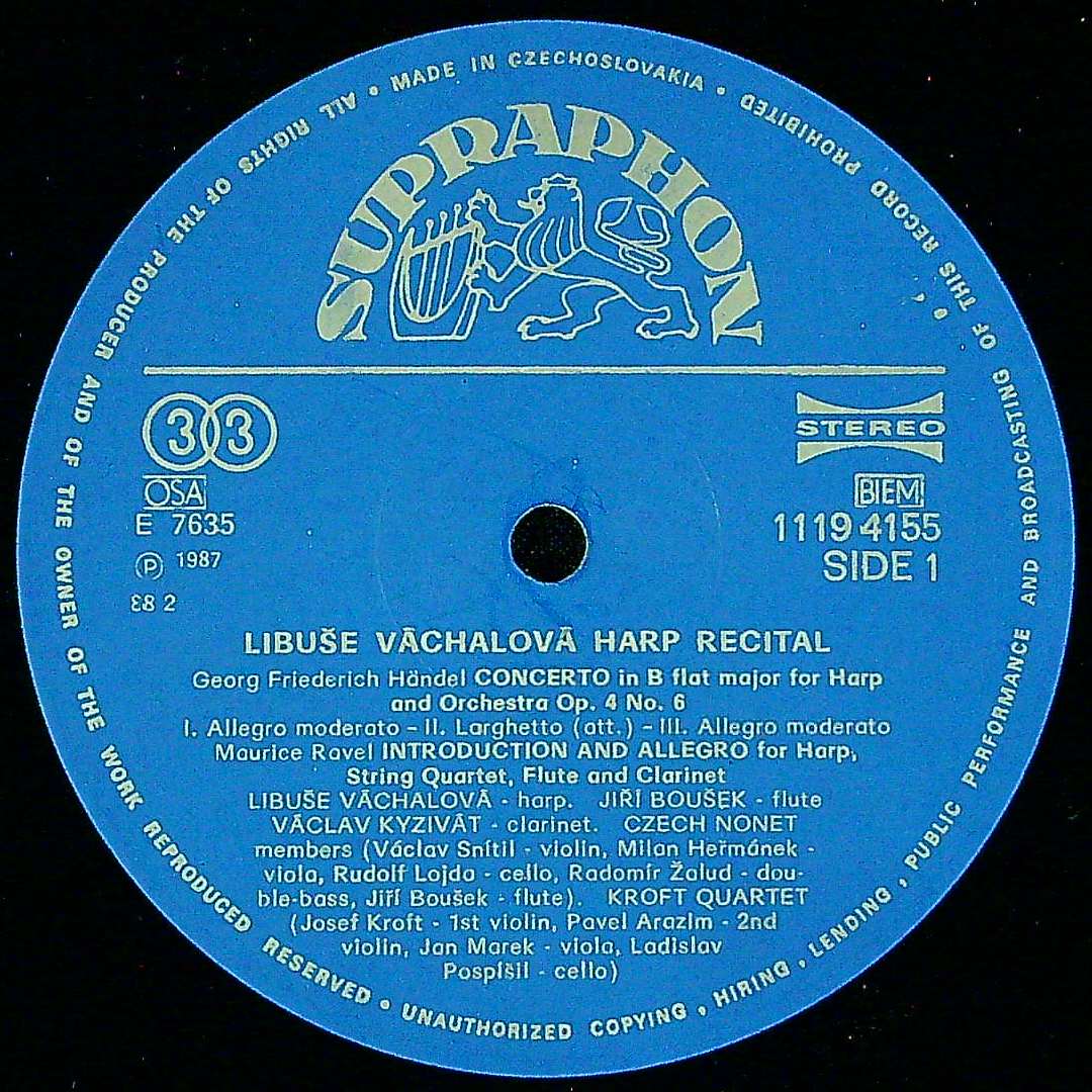 商品コード:1386-041nb[SUPRAPHON] L.ヴァハロヴァー(hp) 他 / Hpリサイタル/ヘンデル, ラヴェル, ドゥシーク, トルニェチェク, フィッシャー